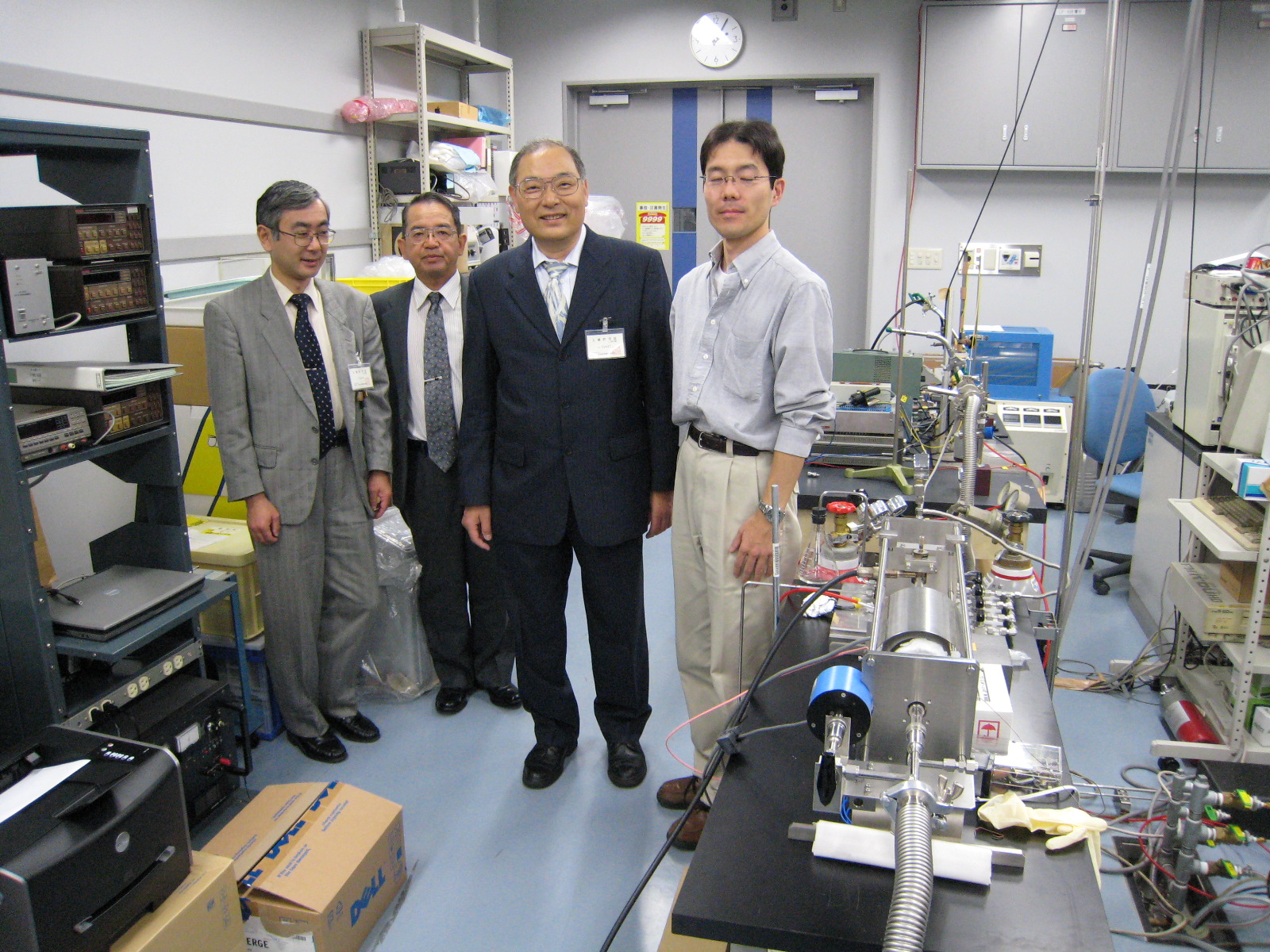| 09.07.06 | サイトビジット 東北大・金研・齊藤英治 慶大講師から東北大金研教授に昇任されました。新しい地でいっそう研究を加速します。 | ![]() 中嶋所長と記念撮影 |