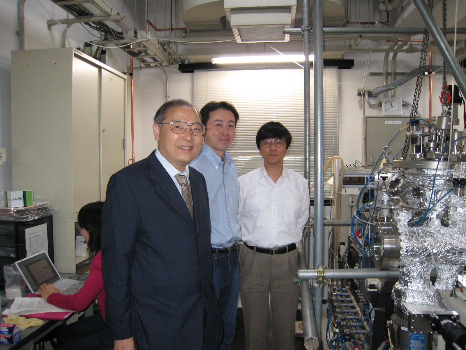 | 10.05.26 | サイトビジット NICT(情報通信研究機構)・東脇正高 採択課題「III族酸化物/窒化物半導体複合構造の界面制御とデバイス応用 」(UCSBから帰国原職復帰に伴い訪問) | ![]() 寶迫グループリーダー、川西プログラムリーダと記念撮影 |