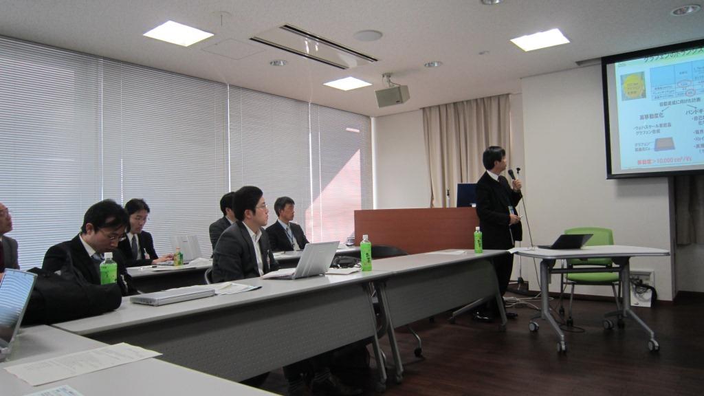 | 10.05.12 | 第4回ミニワークショップをJST三番町1F会議室で開催しました。 白石研究者は、ルブレンへのスピン注入についての課題を述べ、さまざまな観点からアドバイスや議論がされました。町田研究者は、グラフェンの量子ドットを微細加工技術で作製し電気特性を測定したことを報告しました。野田研究者は、高密度CNTの創成、高速での生成について発表しました。 | 第4回ミニWS写真 |