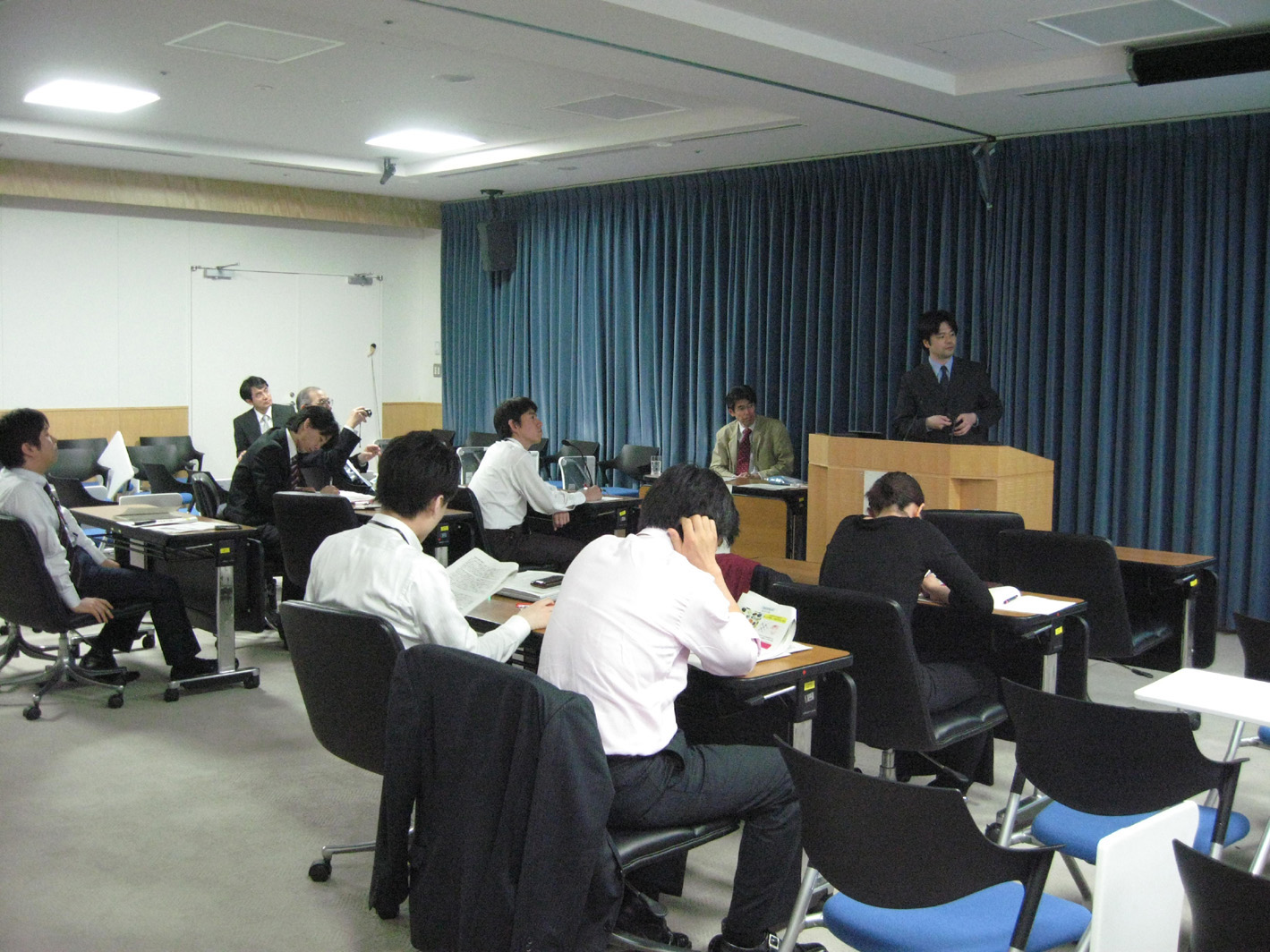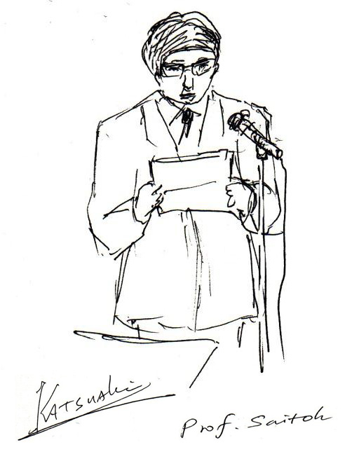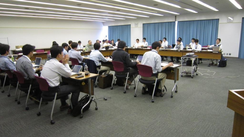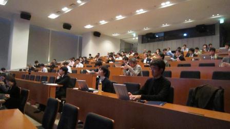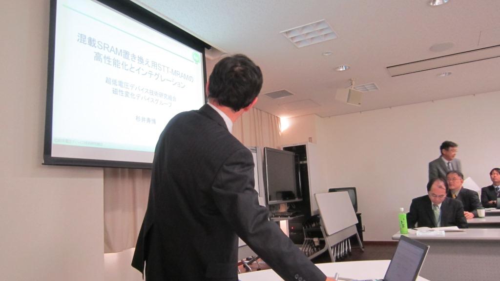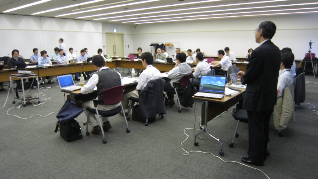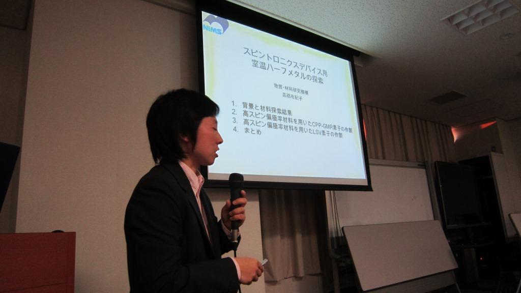 1期生のうちライフイベントで2ヶ月終了が延期された高橋有紀子研究者の終了式がありました。彼女は、20種類以上の新しいホイスラー合金を作成、PCAR法で74%という高いスピン偏極率をもつ材料を発見、また、CPPGMR素子としては最高性能のGMR比を達成しました。すでに卒業した1期生も葛西、齊藤、白石、塚本、深田、村上、安田、山口、若林の9名が参加、近況を報告していただきました。卒業後もみんなすごくがんばっています。2期生、3期生もどんどん成果が出ています。2期生のうち、本領域からFIRSTに飛び級した福村研究者からも近況報告がありました。粟野アドバイザに特別講演をしていただきました。ITRSのERM, ERD中心に話された後、国際標準化の重要性を強調されました。 | ![]() ![]() 会場スケッチ |