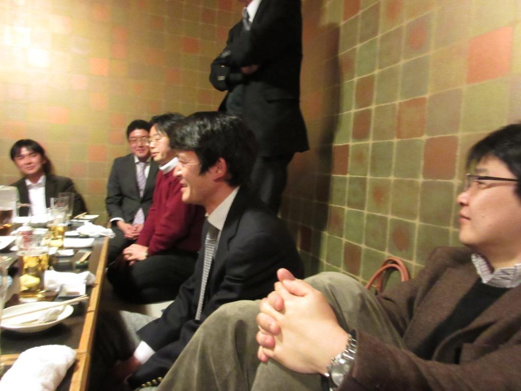 | 12.03.15 | 18:30-21:00、第2期生の修了証授与式が懇親会場となった「Bistro ATTON」で開催され、懇親会を欠席した1名を除く8名の修了生に修了証を、FIRSTに飛び級した1名に認定証を手渡した。 |