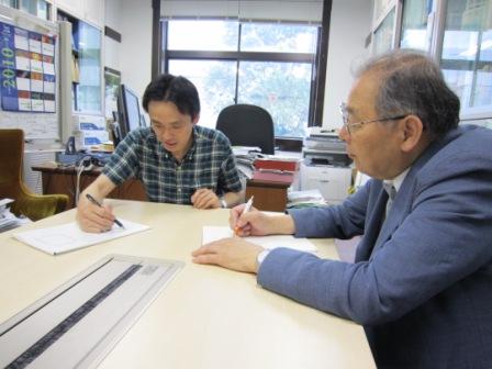 | 10.05.13 | サイトビジット 慶大・理工・山口明啓 (最終年度研究方針確認、上司教授変更に伴う挨拶をかねて) | ![]() 能崎幸雄教授と記念撮影 |