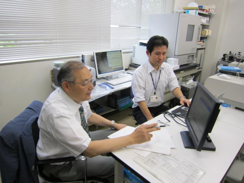 | サイトビジット 物材機構(千現)・高橋有紀子 産休から研究に復帰されたので、研究室を見せてもらいました。 | ![]() 総括・安田研究者とともに | |