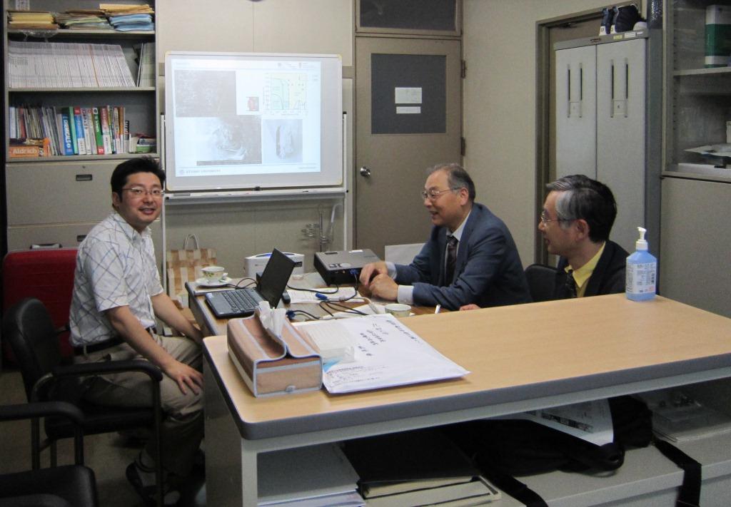 | 10.06.07 | サイトビジット NIMS(千現地区)・安田剛・高橋有紀子研究者 (最終年度研究方針確認)安田研究者:ポリマー延伸による電気特性変化の物性追求を議論 高橋研究者:点接触アンドレーフ反射測定によるスピン偏極率評価法について議論 | ![]() ![]() サイトビジットでのディスカッション風景 |