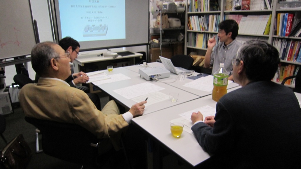 | 12.04.23 | 午後、東大工学部に野田優研究者を訪ね、各種カーボン構造体の実装研究の進捗状況について話を伺い、今後の方向性を話し合った。 |