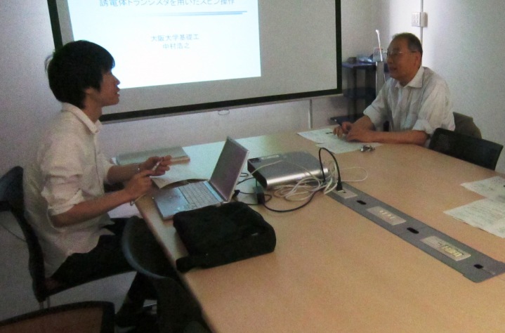 | 09.11.13 | サイトビジット 阪大・基礎工・中村浩之 採択課題「誘電体トランジスタを用いたスピン操作」 | ![]() 木村剛教授と記念撮影 |