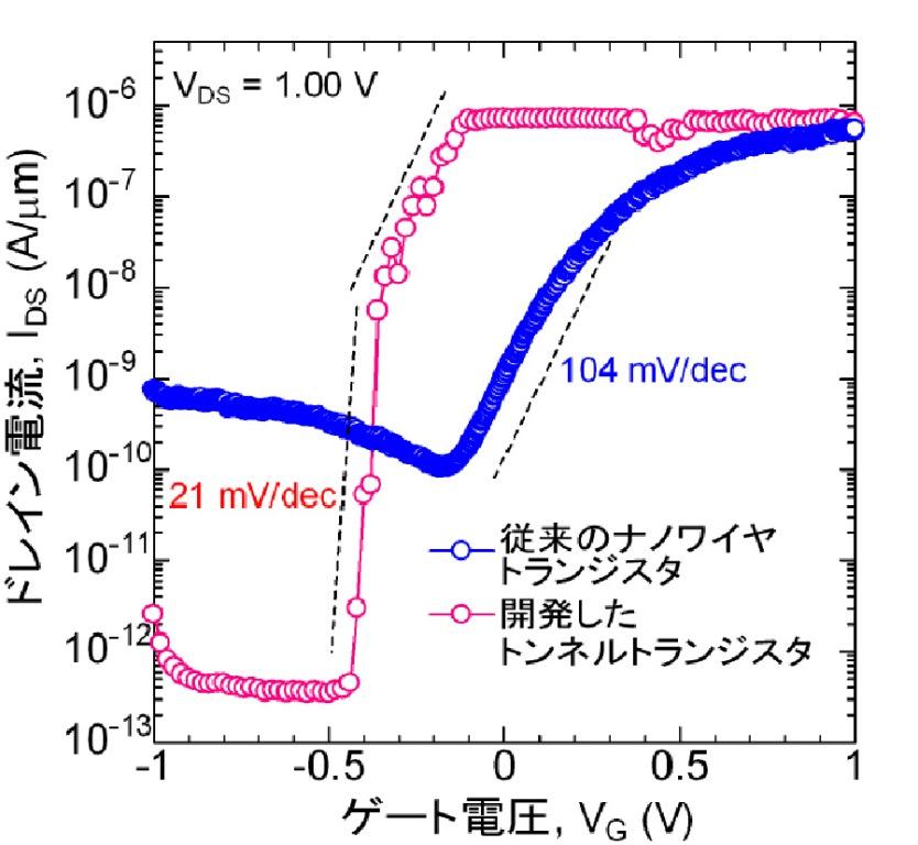 | 12.06.07 | 15:00 富岡研究者は「トランジスタの理論限界を突破 次世代省エネデバイス実現へ」という記者発表を行いました。 富岡研究者らは、トランジスター構造を縦型にし、ラップ状にゲート電極を作ることで、電流のリークを抑えました。さらに、ナノメートルスケールの結晶成長技術によってシリコンとインジウムヒ素(InAs)ナノワイヤ界面を形成し、その界面で生じる電子のトンネル効果による電流をスイッチ素子に使うことで、サブスレッショルド係数の理論限界60mV/桁を大幅に超える21mV/桁を初めて達成しました。 この結晶成長技術を用いた界面構造は、従来の不純物ドーピングや化合物半導体などの手法における技術的なボトルネックを回避できるため、本来トンネルトランジスターが示せる小さなサブスレッショルド係数を実現しました。 この研究成果は、ハワイで開催されたVLSIシンポジウム2012の招待講演として6/12に発表されました。【プレスレク配付資料】 |