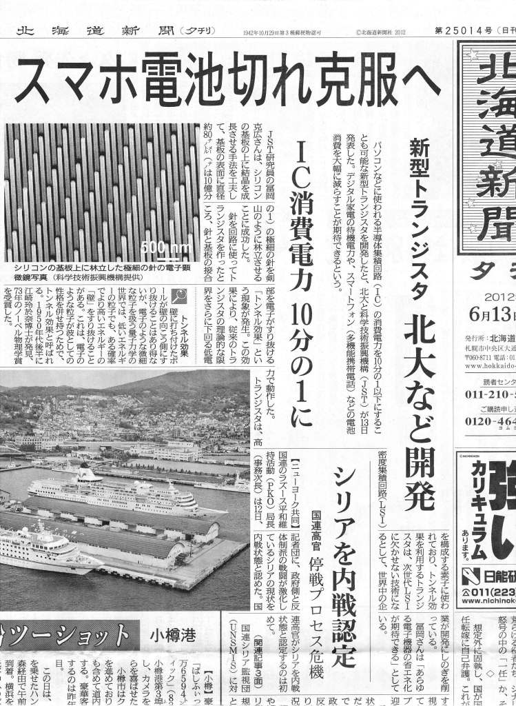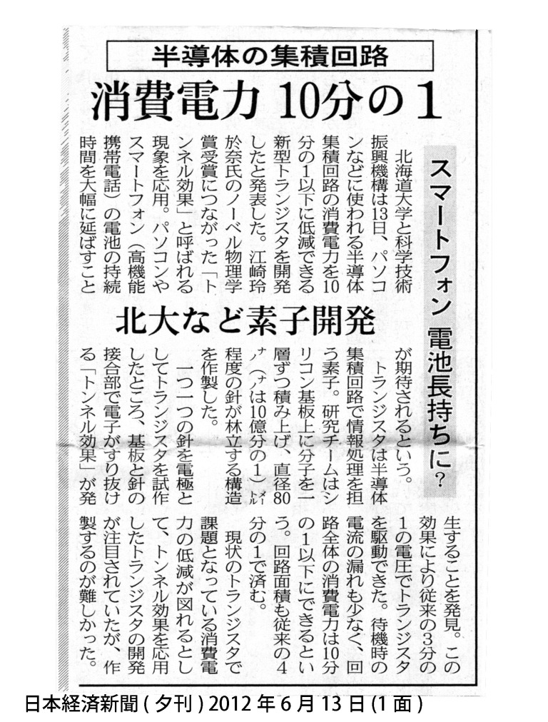 | 12.08.03 | 日刊工業新聞でで冨岡研究者の最近Natureに掲載された論文が「ナノワイヤで立体トランジスタとして紹介されました。 | 記事 |