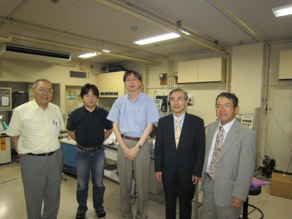 | 09.11.13 | サイトビジット 阪府大・21世紀機構・高橋 和 採択課題「フォトニック結晶ナノ共振器シリコンラマンレーザーの開発」 | ![]() 石田武和教授と記念撮影 |