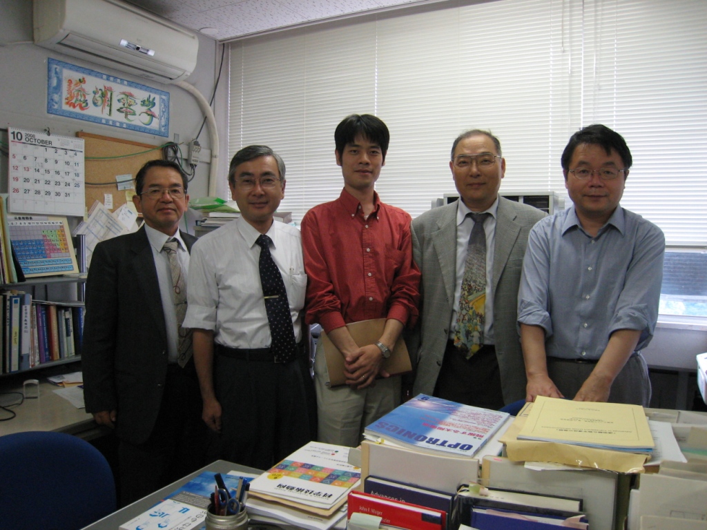 | 12.06.04PM | さきがけ「次世代デバイス」最終年度サイトビジットで大阪府大に高橋研究者を訪ねた。彼は、フォトニック結晶を用いてシリコンのラマンレーザの実現に取り組んでおり、200万という高いQ値をもつ共振器をくみあわせ,nWという非常に微弱な光励起でラマン線を観測できており、あと一歩でレーザ発振するところまで来た。これが成功するとSi光配線の実現に大きなインパクトを与えるはず。がんばって欲しい。(ディスカッション風景の写真がどういうわけか写っていない!) |