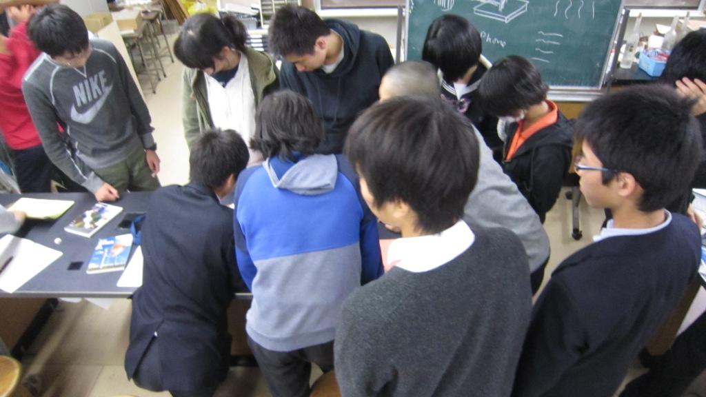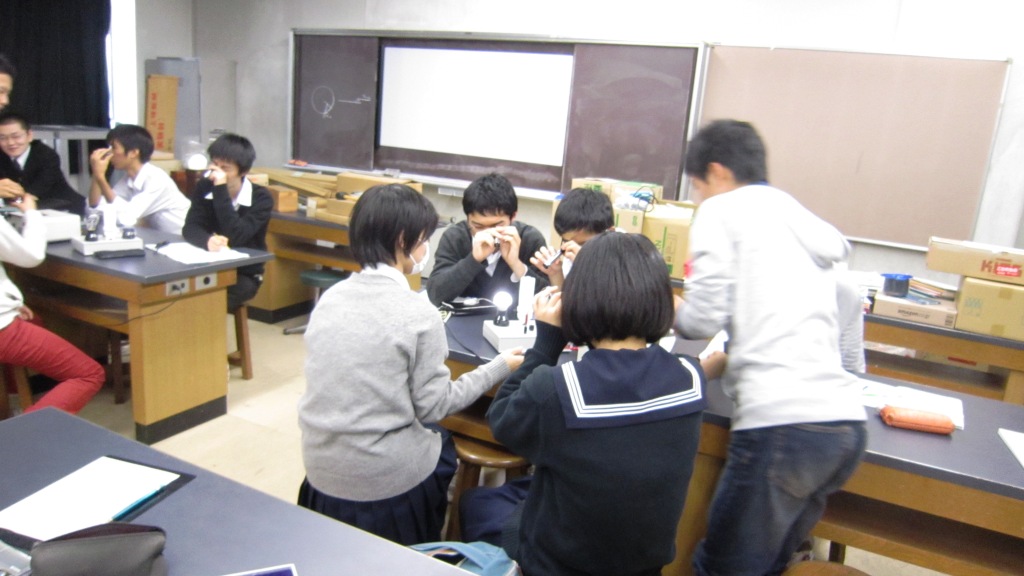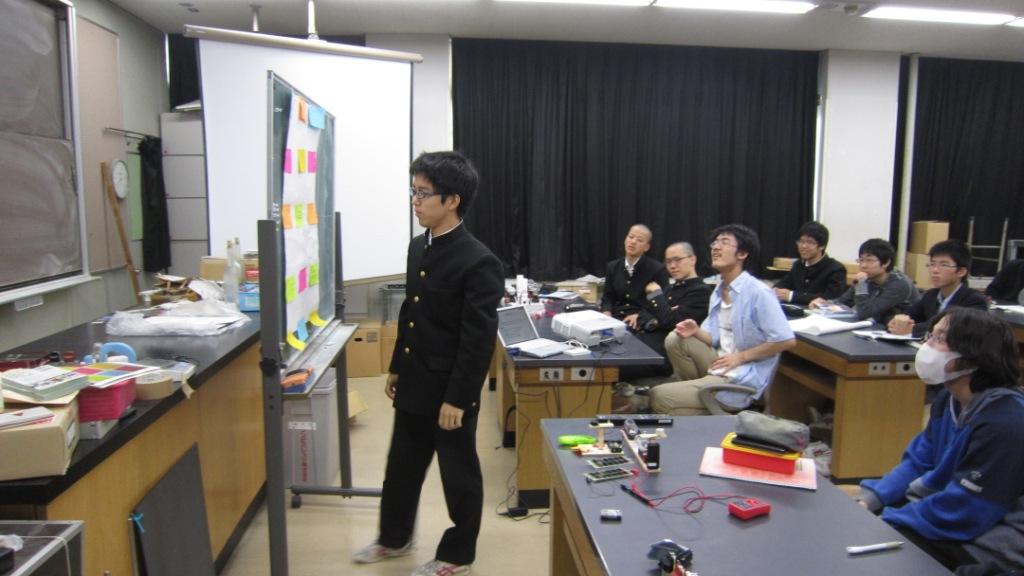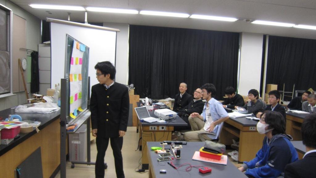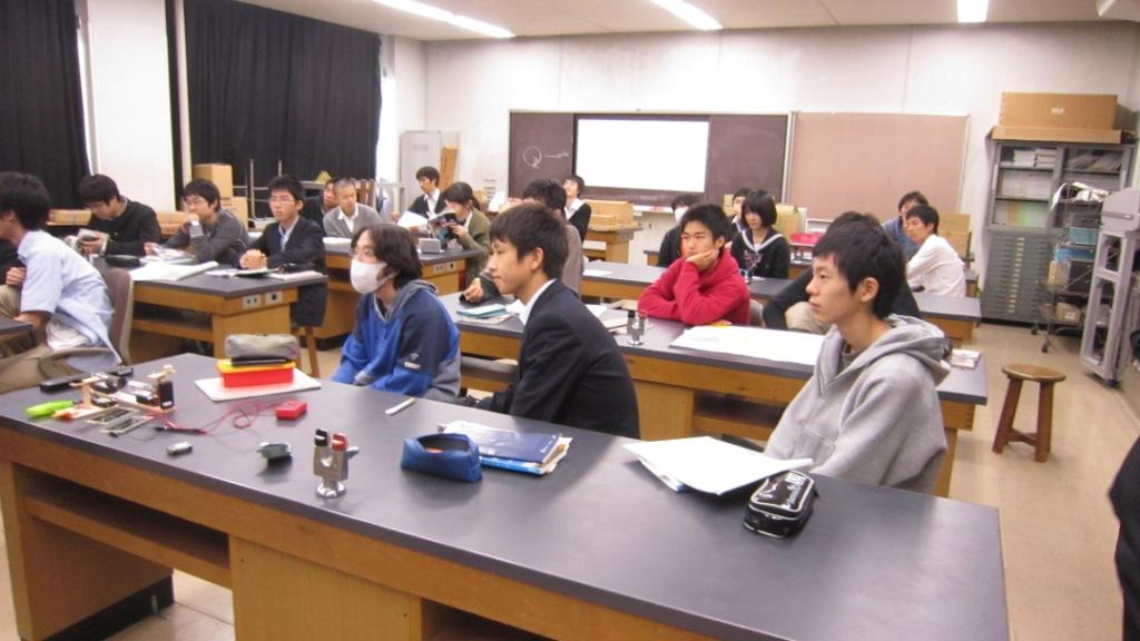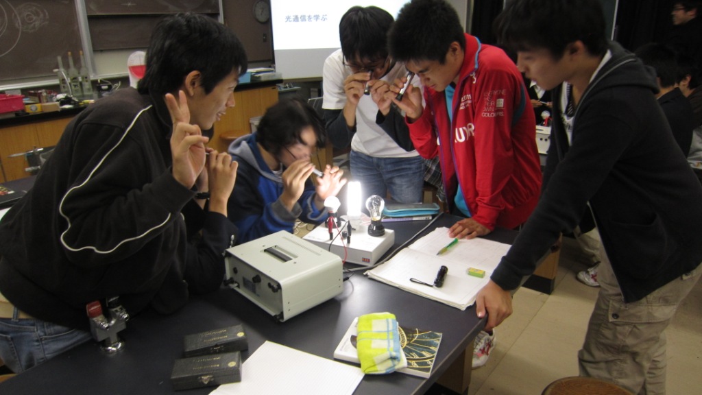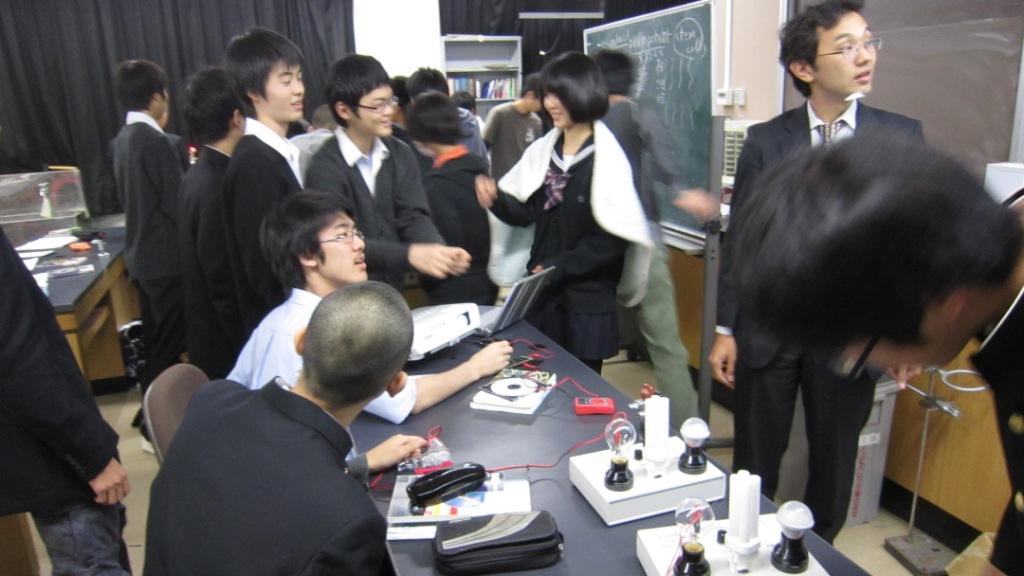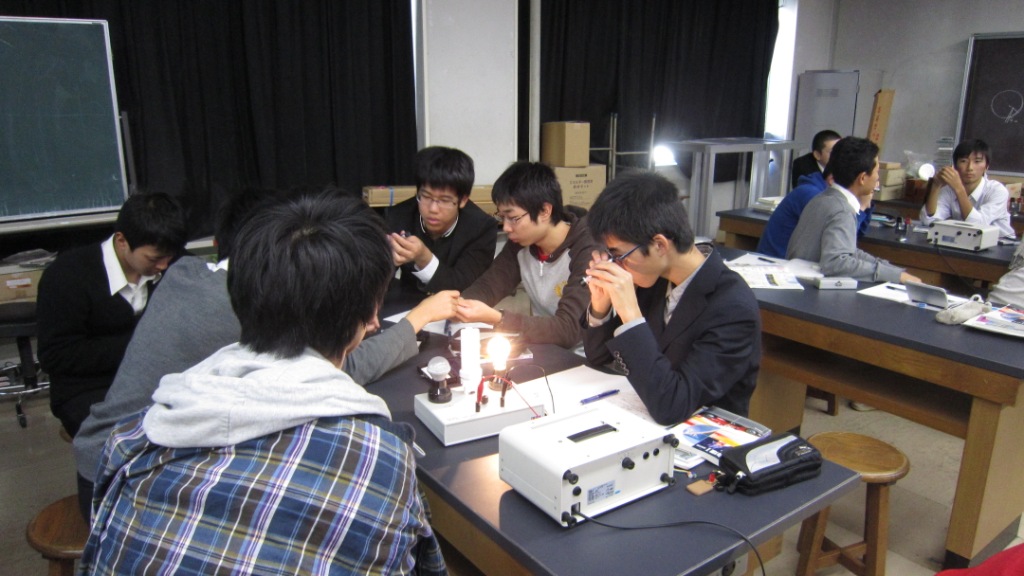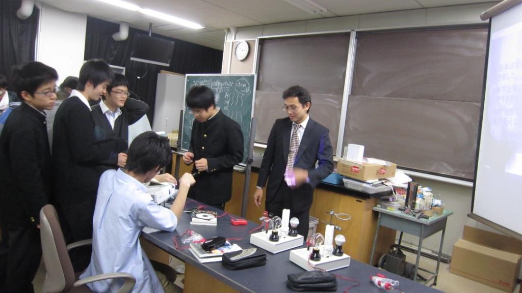 - 合計4時間の授業で得たものは大きかった。実験は実に興味深かった。物理の実験はつまらないイメージだったが、今回実際にやった実験は想像を絶するものばかりだった。実験をしている途中に気づいたのだが、物理と化学は深くむすびついて関係しているのだ。進路は化学だが、物理をもっと勉強して現象や生活をミクロでさまざまな視点から見れる人間になりたいと考えた。今回の授業で自分の価値観を変えることができた。ありがとうございました。