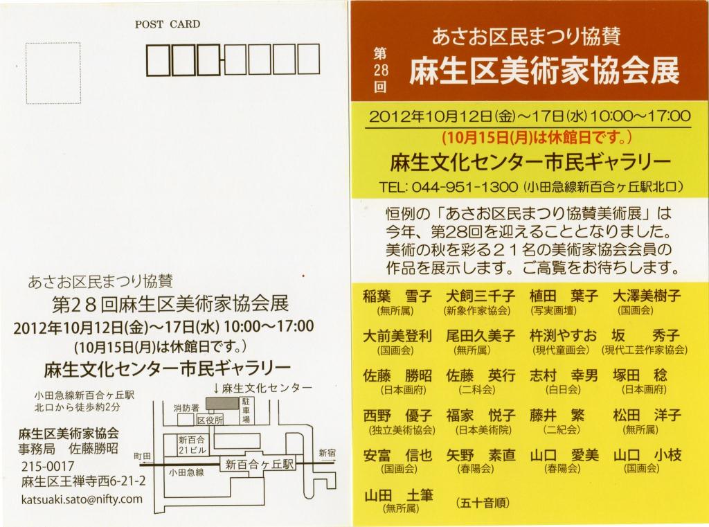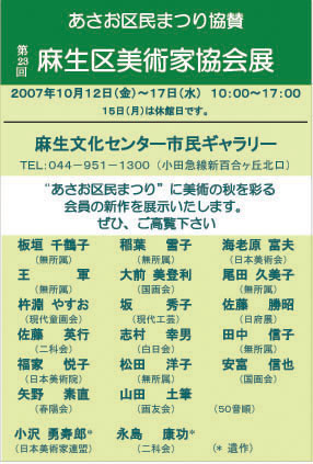 | 2007.9.14 第23回麻生区美術家協会展の案内はがきが出来ました。 |