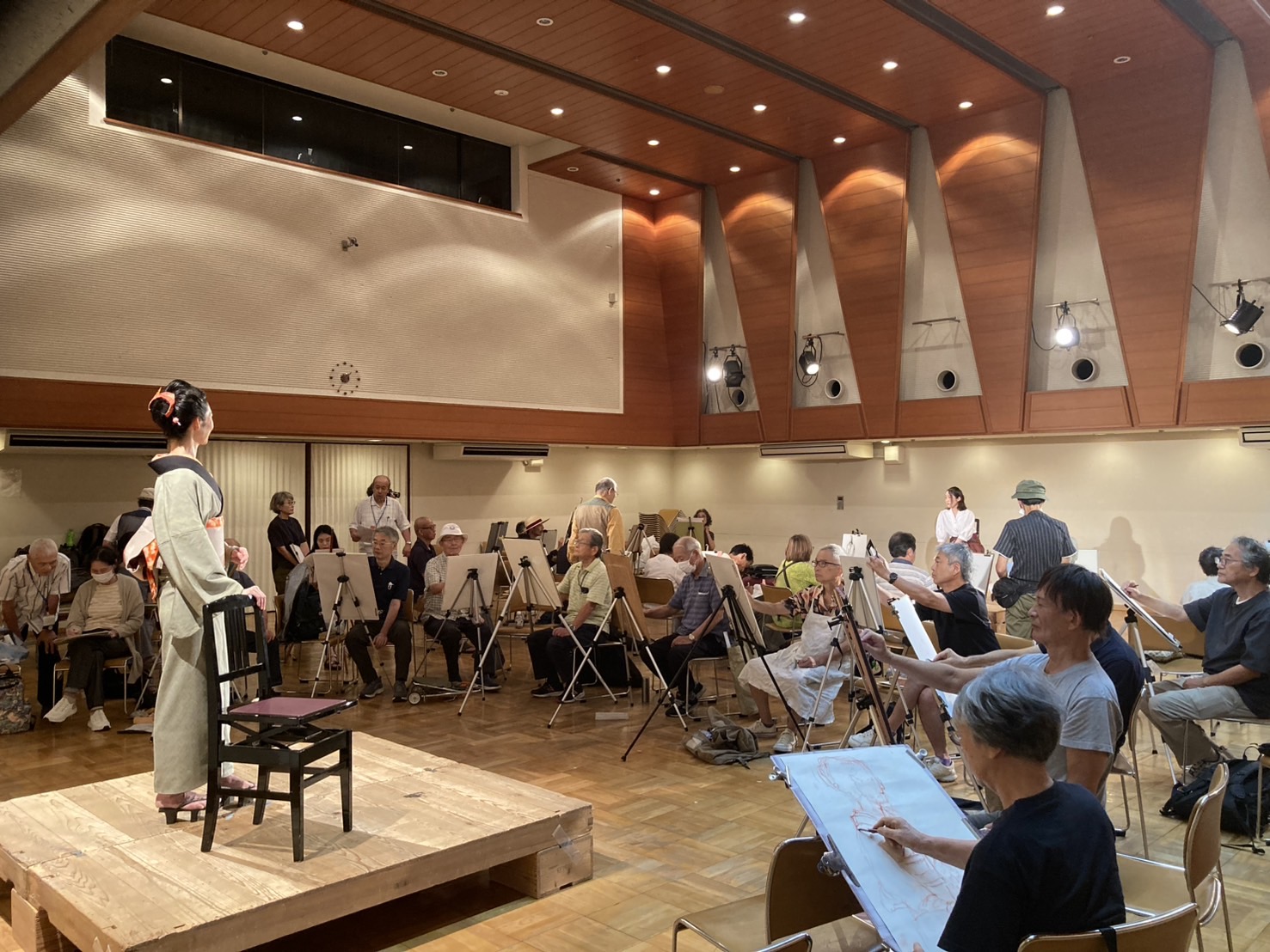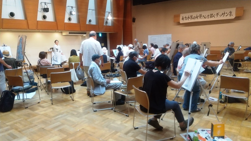 | 2023.07.15 | 「舞台衣装の女優さんを描くデッサン会」 | 7月15日生市民館大会議室 | 麻生区文化協会が劇団「民藝」の協力を得て実施してきた「舞台衣装の女優さんを描くデッサン会」が開催されました。 モデルは藤巻るも・加來梨夏子の2名。デッサン会参加者は31名でした。 文化協会会長の要請を受けて、麻生区美術家協会は、佐藤英行・佐藤勝昭、千葉純子、松田洋子の4名を指導者として派遣しました。 |