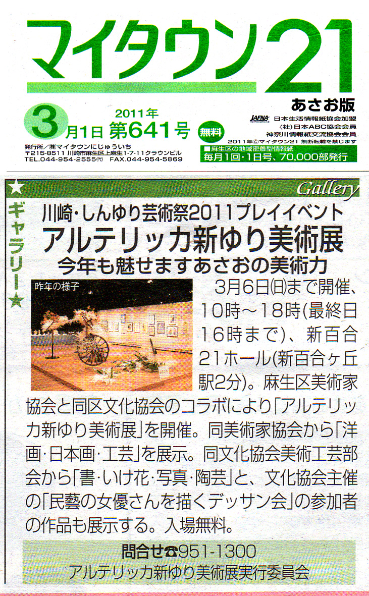 ![]() | アルテリッカ新ゆり美術展2011 | ![]() |