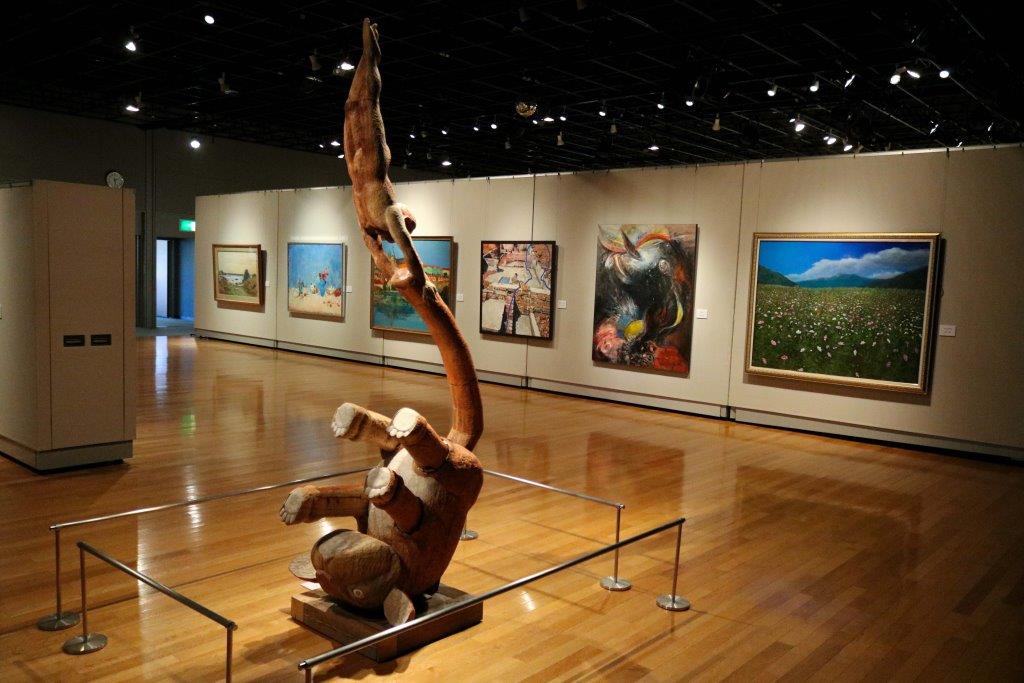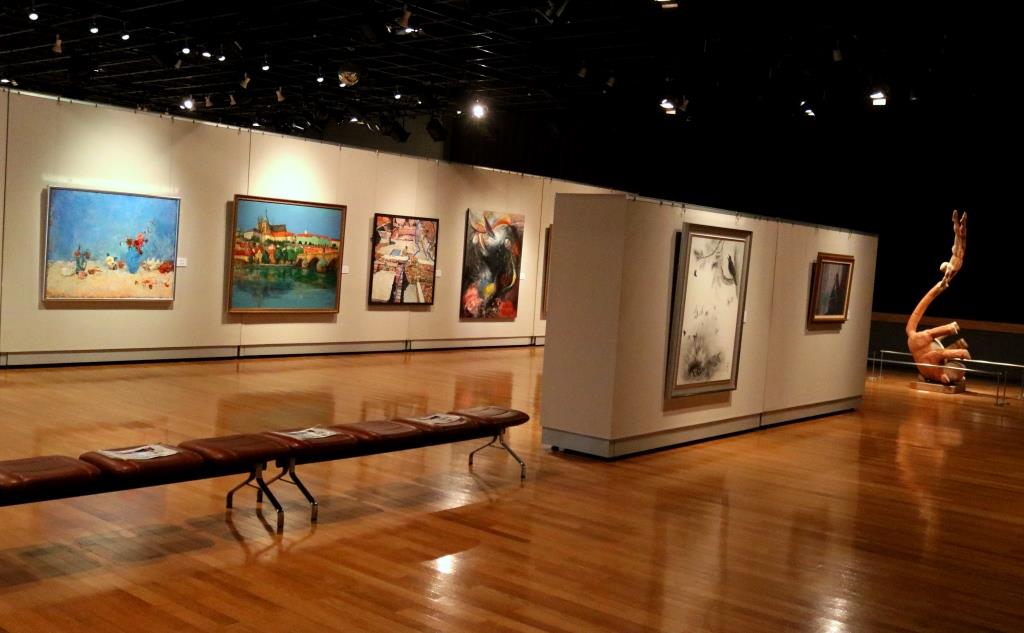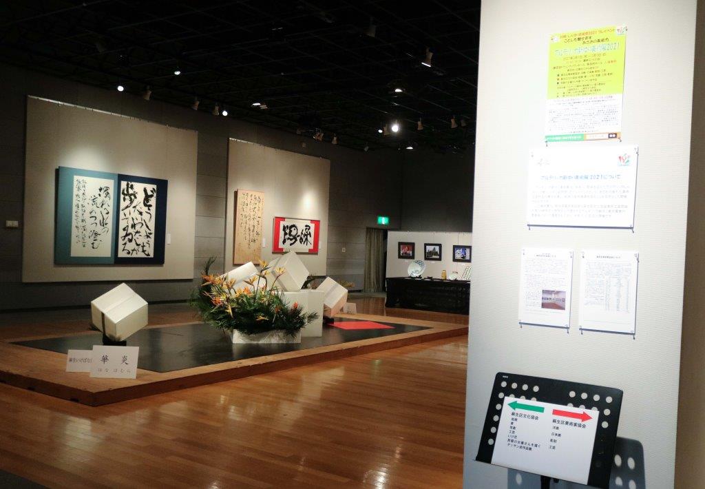 | 本事業においては、会場を半分にわけ、麻生区美術家協会の作品展示と、麻生区文化協会美術工芸部会の作品展示の2つが平行して行われました。 美術家協会は洋画・日本画・彫刻・工芸の大作を展示しました。文化協会は、麻生区いけばな協会会員のいけ花展示、絵画、書、写真、工芸、彫刻の展示に加え、文化協会主催の「民藝の女優さんを描くデッサン会」参加者の作品を展示しました。 | ||||