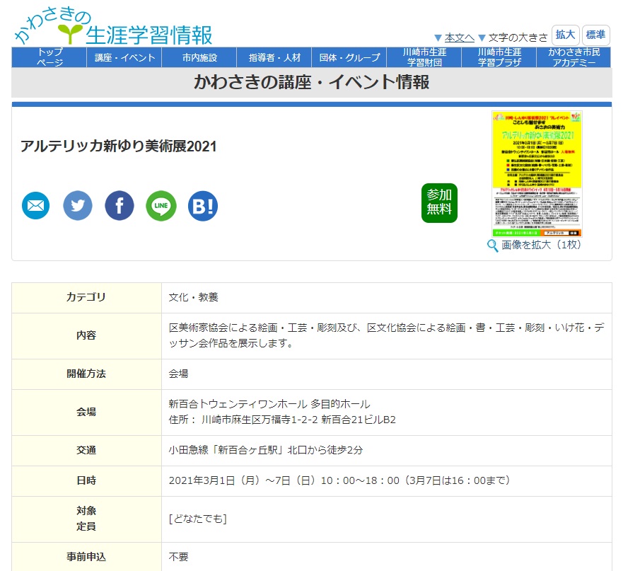 ![]() | アルテリッカ新ゆり美術展2021 | ![]() |