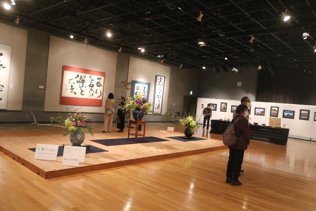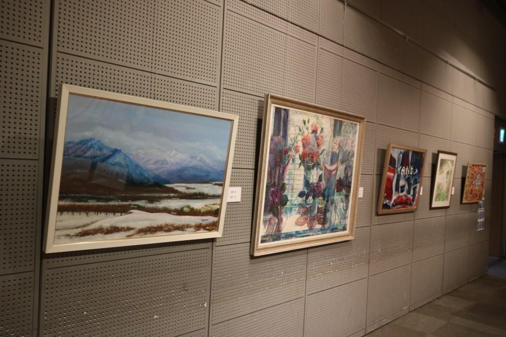 | 本事業においては、会場を半分にわけ、麻生区美術家協会の作品展示と麻生区文化協会美術工芸部会の作品展示の2つを平行して行います。 美術家協会は、洋画・日本画・彫刻・工芸の大作をを展示しました。文化協会は、麻生区いけばな協会会員のいけ花展示、絵画、書、写真、工芸、彫刻の展示に加え、文化協会主催の「民藝の女優さんを描くデッサン会」参加者の作品を展示しました。 | ||||