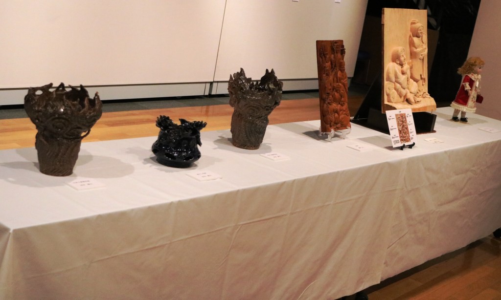 | 本事業においては、会場を半分にわけ、麻生区美術家協会の作品展示と麻生区文化協会美術工芸部会の作品展示の2つを平行して行います。 美術家協会は、洋画・日本画・彫刻・工芸の大作をを展示しました。文化協会は、いけ花展示、絵画、書、写真、工芸、彫刻の展示に加え、文化協会主催の「舞台衣装の民藝の女優さんを描くデッサン会」参加者の作品を展示します。 | ||||