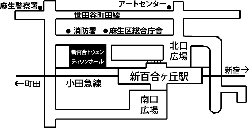 図をクリックすると拡大 | ![]() 新百合21ビル多目的ホール(地下2階) | |||
