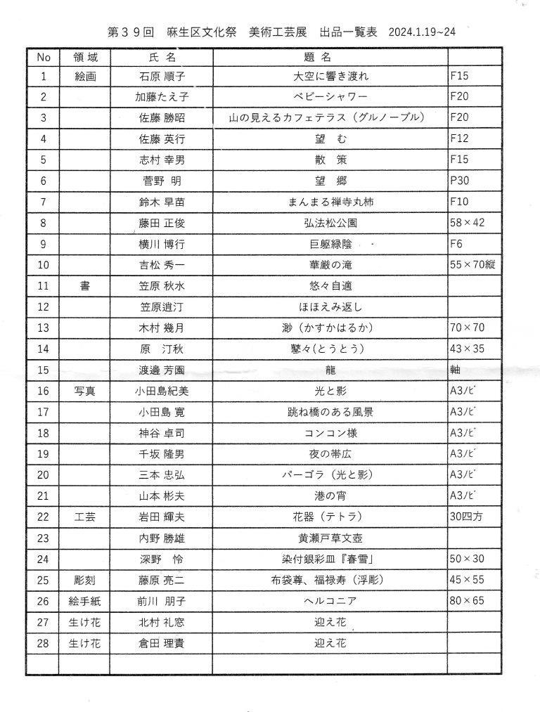 会期:2024.1.19-1.24, 麻生市民館・市民ギャラリー