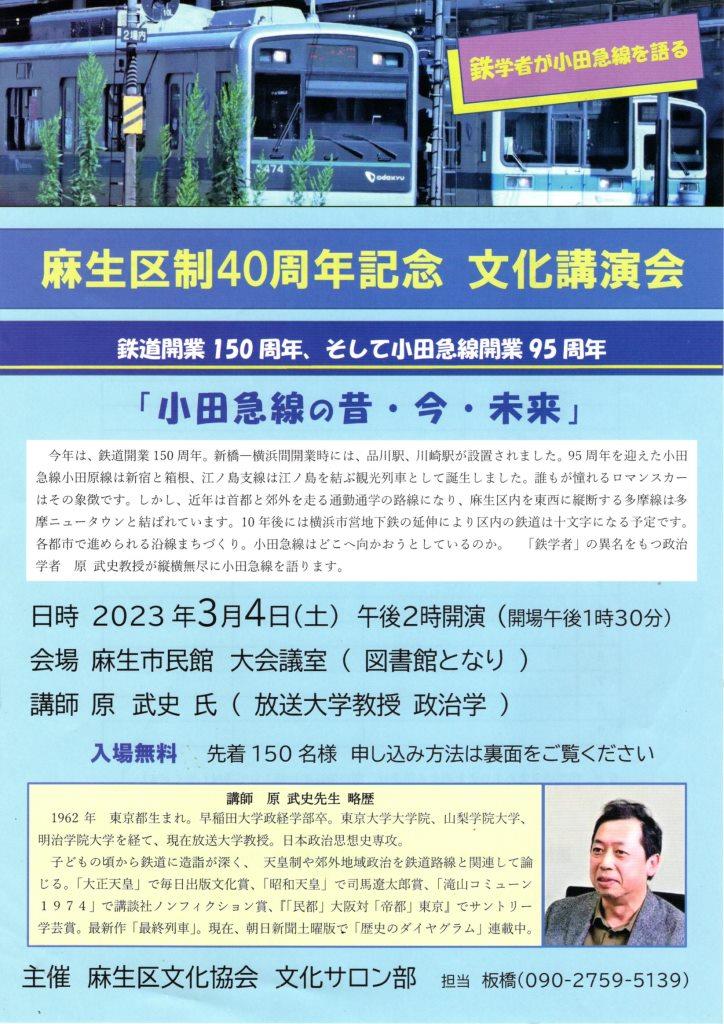 | 2023.03.04 | 区制40周年記念文化講演会「小田急線の昔・今・未来」 講師:原武史 放送大学教授 |