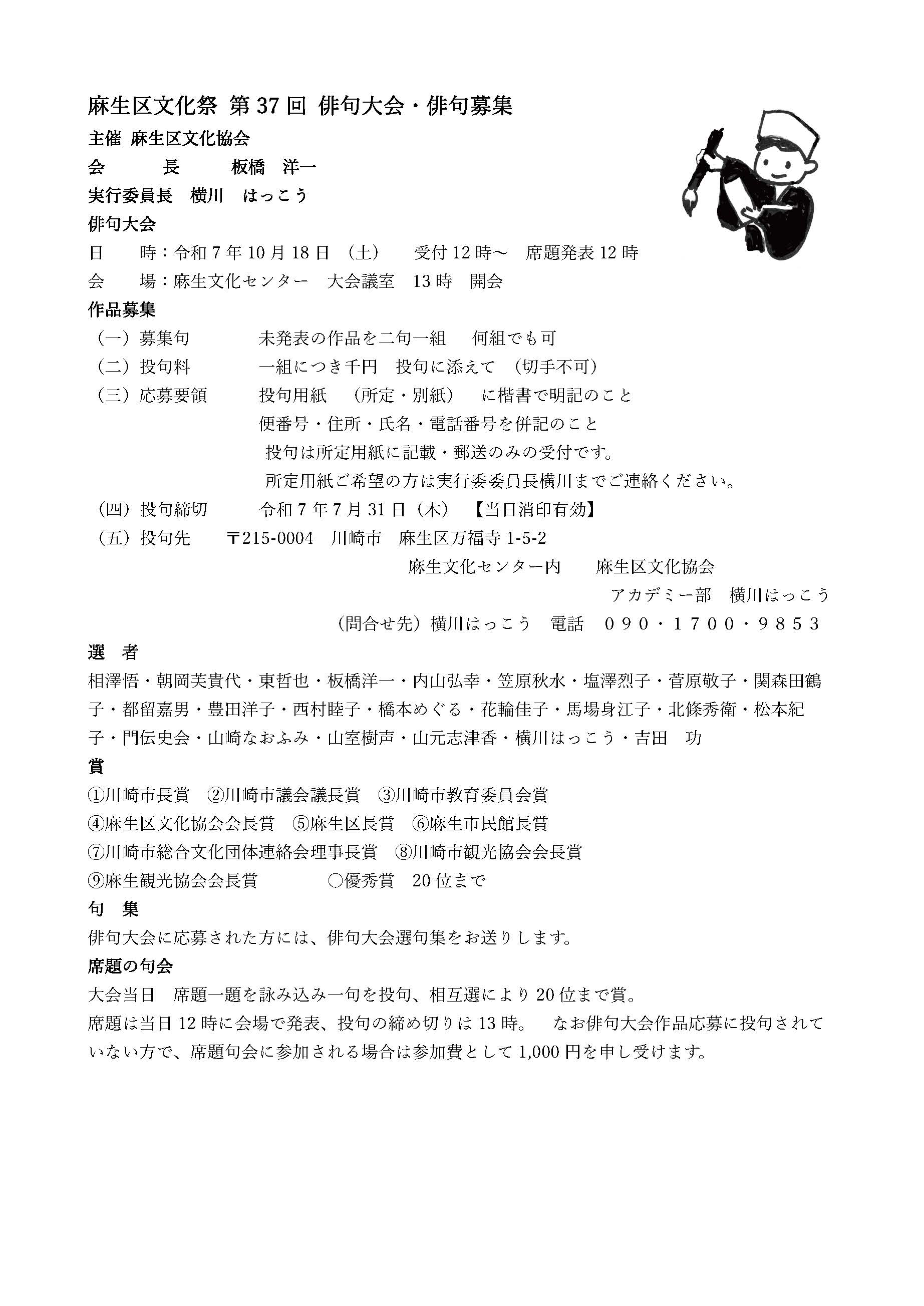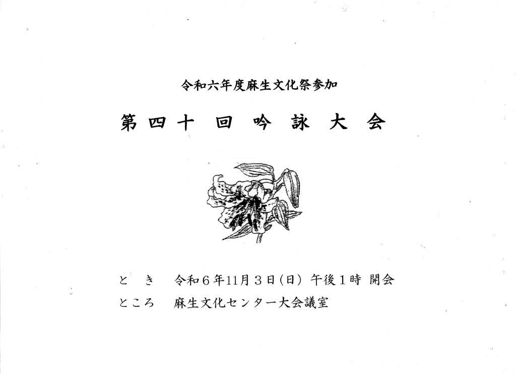 | 2025.06.10 | 麻生区文化祭第37回俳句大会の案内ができました。 | 俳句大会案内 | |||