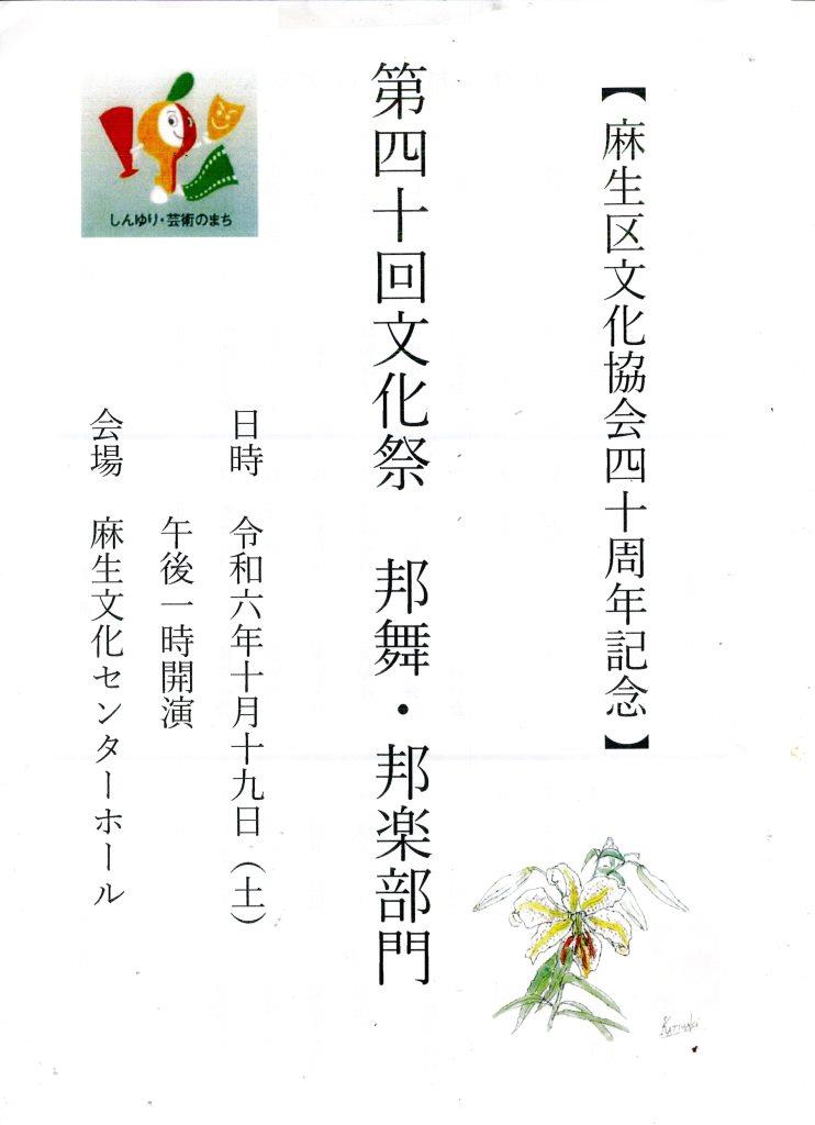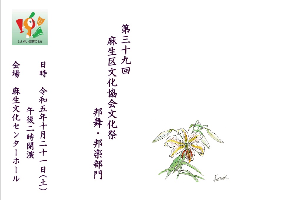 | 2023.10.21 | 第39回麻生区文化祭始まる 「邦舞・邦楽」公演、「俳句大会」がありました。 | ![]() 俳句大会句集 邦舞邦楽パンフ | |||