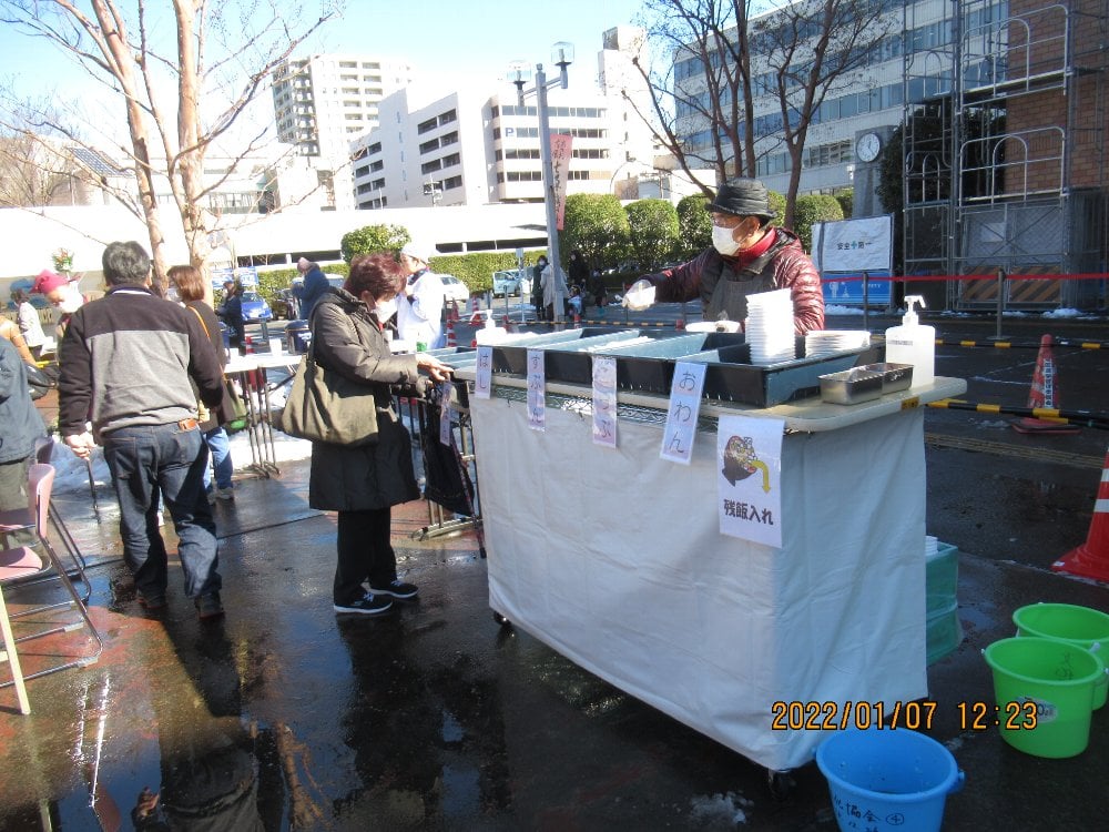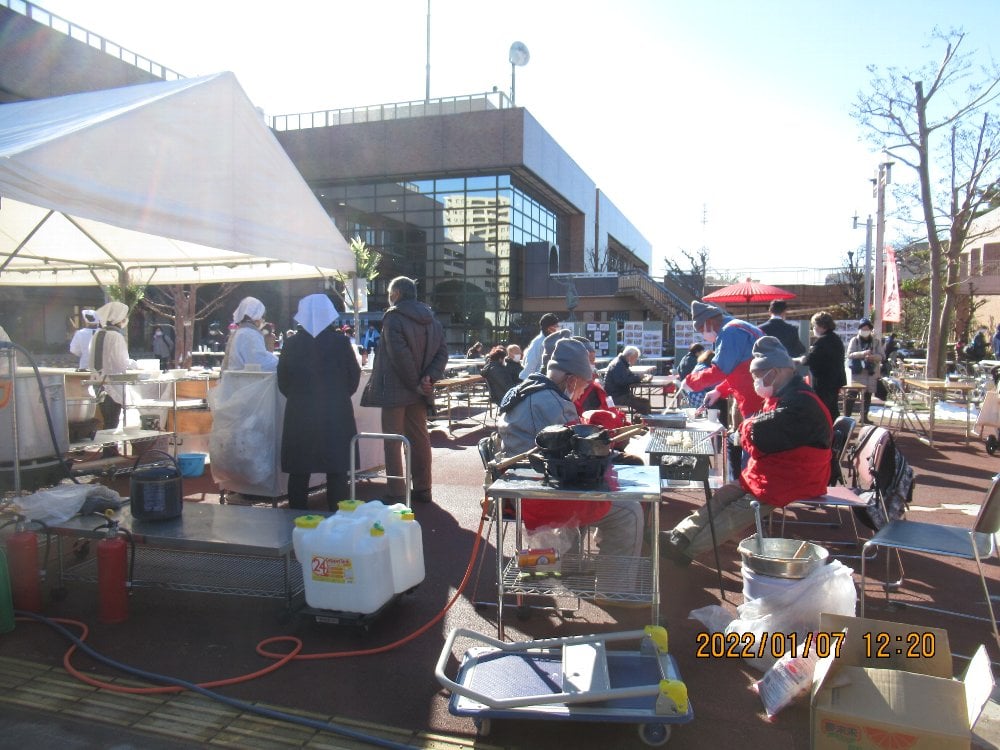 | 2022.01.07 | 第18回あさお古風七草粥の会が開催されました。コロナ対策として整理券を配布し、時間を15分毎に分けて提供するやり方をとりました。397食が提供されました。(写真は藤田正俊様のFacebook記事より) | ![]() ![]() ![]() ![]() ![]() | |||