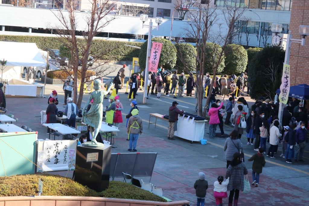 | 2024.01.07 | 晴天に恵まれ、「第20回あさお古風七草粥の会」が賑やかに開催されました。1000食を配布しました。能登半島地震支援募金が82,375円あり、読売光と愛の事業団に寄贈しました。 |