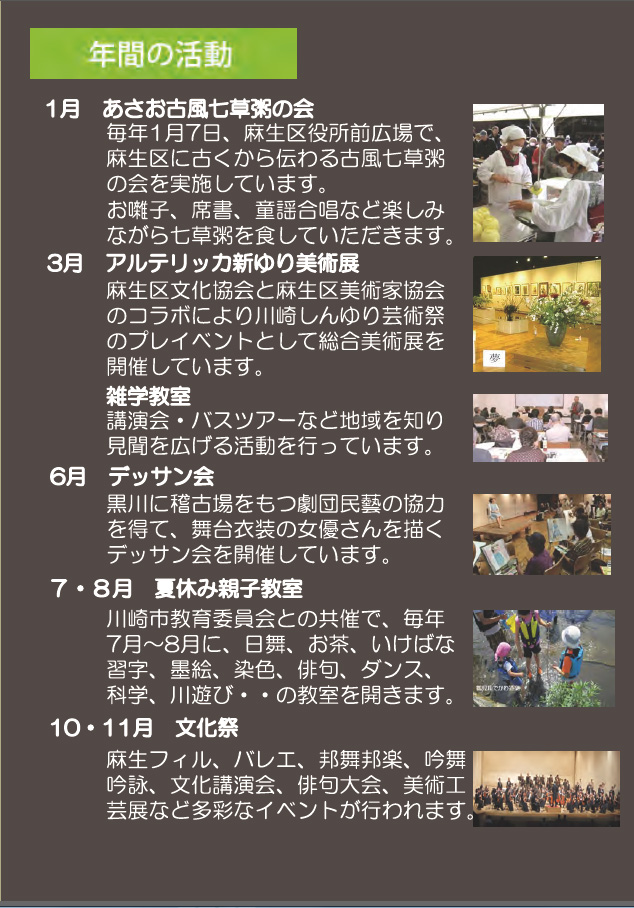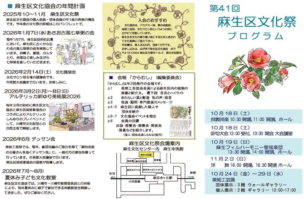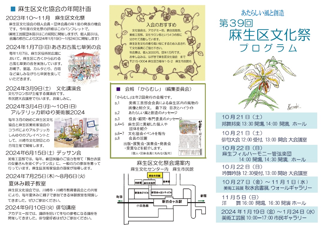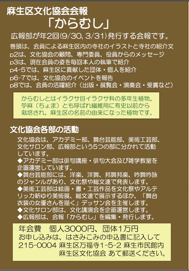 麻生区を文化の香り高い街にするため入会されて文化振興にご協力下さい。 |