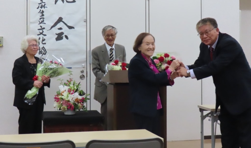 | 2025.03.15 | 麻生区文化協会40周年記念式典が13:00から市民館大会議室で開催されました。板橋会長の挨拶の後、表彰式が行われ、菅原敬子前会長に特別賞、七草粥の会の設営に協力頂いているNPO法人アルデンテさんと、会報からむしの印刷・発行に協力頂いている(株)エリアブレインさんに感謝状が贈られました。このほか、文化祭奨励賞、麻生区文化振興賞の贈呈がありました。 また、文化祭奨励賞の授与の後、山本麻生区長から文化協会の活動に対して感謝の言葉がありました。 記念講演会としてアリージャパン(株)のカルロス・チュー氏を講師にお招きして「ITと映像文化」というタイトルでの講演が予定されていましたが、講師の急病により講演は中止となり、ピンチヒッターとして、板橋会長が「川崎の雑学-川崎に因む本+α」という講演をされました。 |