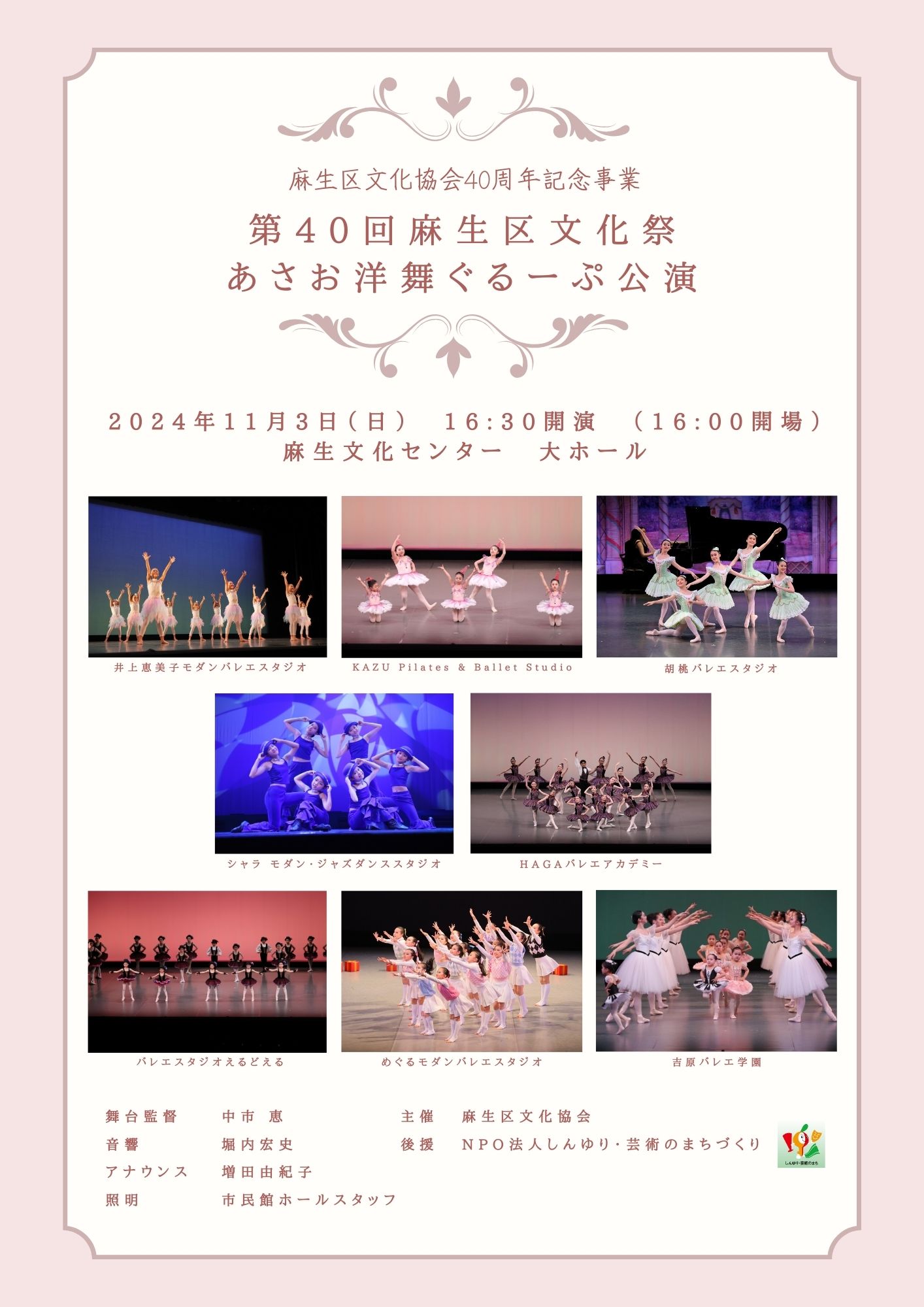 | 2024.11.3 | 大会議室で「第40回吟詠大会」、ホールで「あさお洋舞ぐるーぷ公演」があります。 | ![]() 吟詠大会プログラム 洋舞公演パンフ | |||