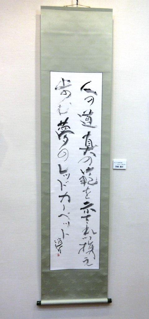 | 笠原逍汀 | 自詠「人の道真の範を示されつ携え歩む 夢のレッドカーペット」 |