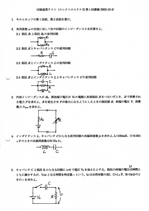 2002年度後期「エレクトロニクスU」での講義プリントです。