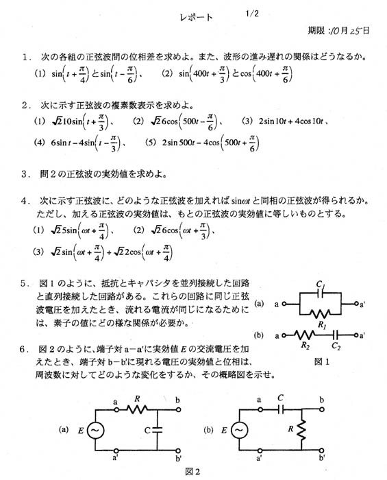 - 10月11日配布:宿題、提出期限10/25