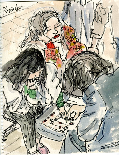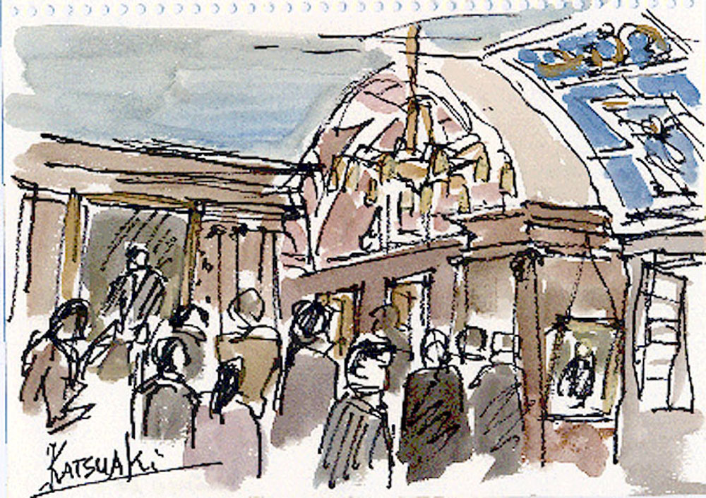 Sado: Ogi from Kyojima, Bird view of Ogi from Joshima Park, Rock Budda statuette in Sukunegi, Sukunegi Village, Mt. Tateyama from Sadomaru boat, Party on the Sadomaru boat |