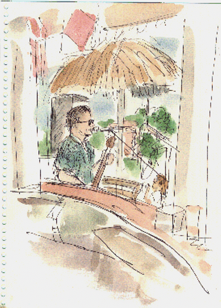 At a restaurant on a beach,
