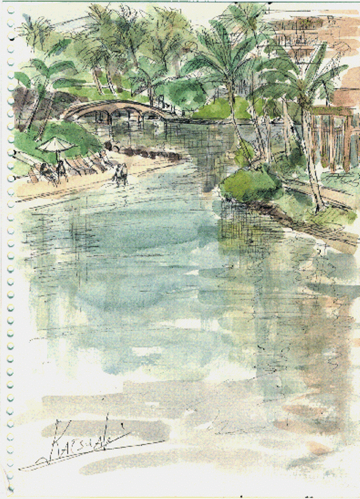 | Hawaii | Canal, boat and tram, Canal and resort-boats, Lagoon beach, Musician at Lagoon beach , View from the Grand Staircase (Fall), Lagoon close to Ocean Tower, Sunset at the Waikoloa Beach , View of resort houses outside the Village , Kirin Chinese Resort, Parm tree and beach, Cona beach |