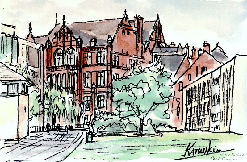 | Salford | River Irwell, Peel Building, Salford University, Manchester Town Hall, Liverpool Town Hall |