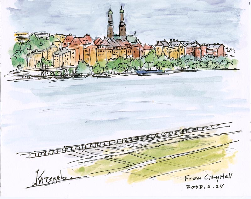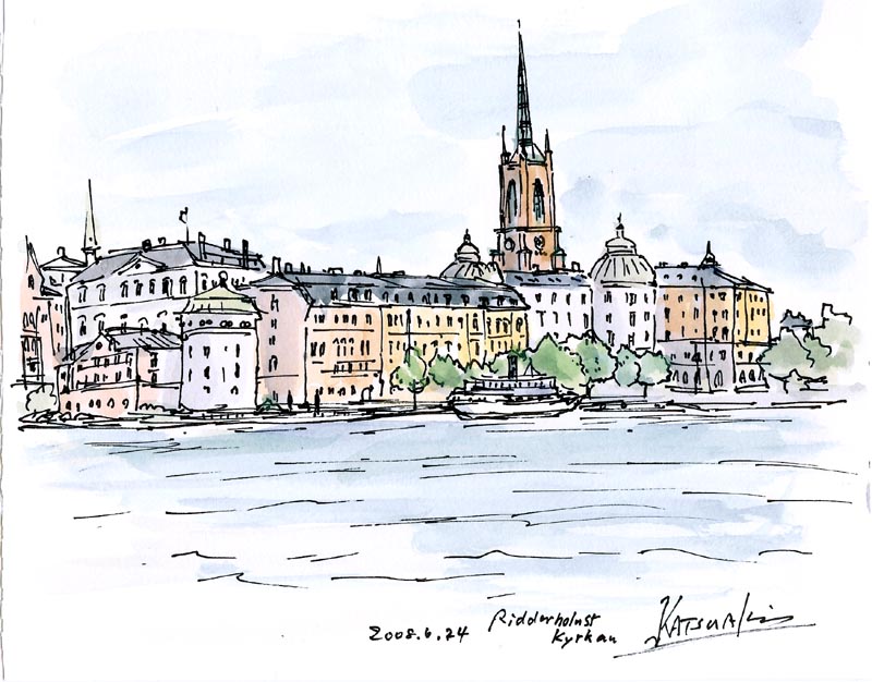 Skeppsholmen from Gamla Stan, Nobel Museum, Ostermalm from Palace back, Sodermalm from the City Hall, Ridderholmen from City Hall |