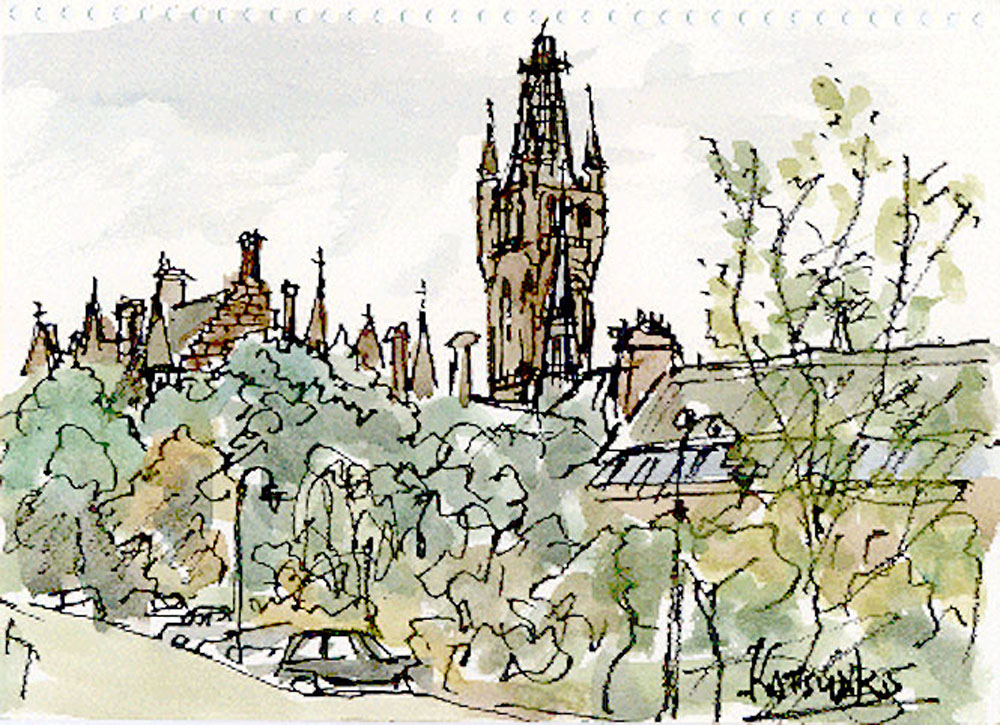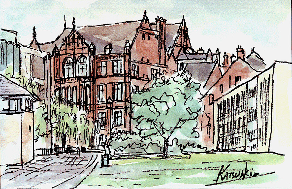 | Glasgow | Suburban Houses, Evening Landscape with Church Tower , Restaurant Ubiquitous Chip, Church in the suburbs of Glasgow , Apartmenthouse in the suburbs of Glasgow, Tower of Glasgow University , Campus scene of Glasgow University (1) , Campus scene of Glasgow University (2), Main Gate of Glasgow University , Street scene close to Glasgow University , Bird's eye view from Glasgow University (1) , Bird's eye view from Glasgow University (2), A banquet at the Town Hall of Glasgow, Botanical Gardens , Clock tower in the Downtown, River and Church , Kelburn Castle (1) , Kelburn Castle (2) |
