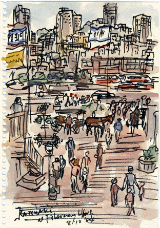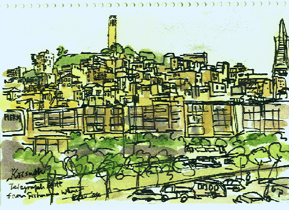 Coit Tower on the Telegragh Hill, Coittower from Pier, Pier 41 , Pier 39, Fisherman's Warf , Restaurant at the Fisherman's Warf, Slope and a Cablecar, Union Square, China Town , UC Bercley |