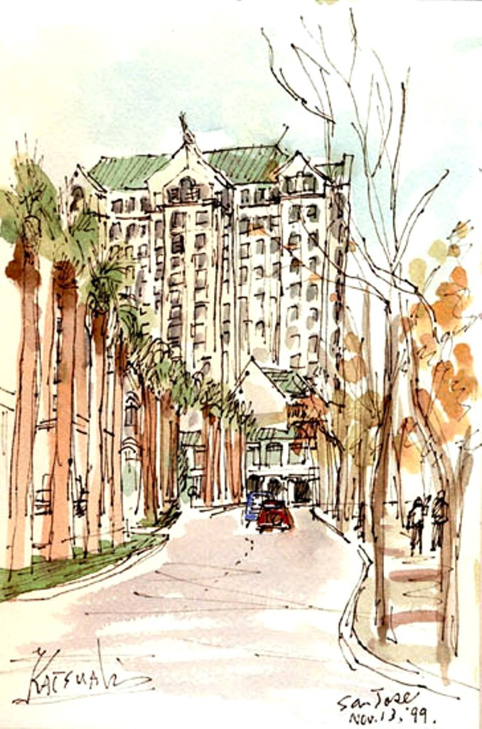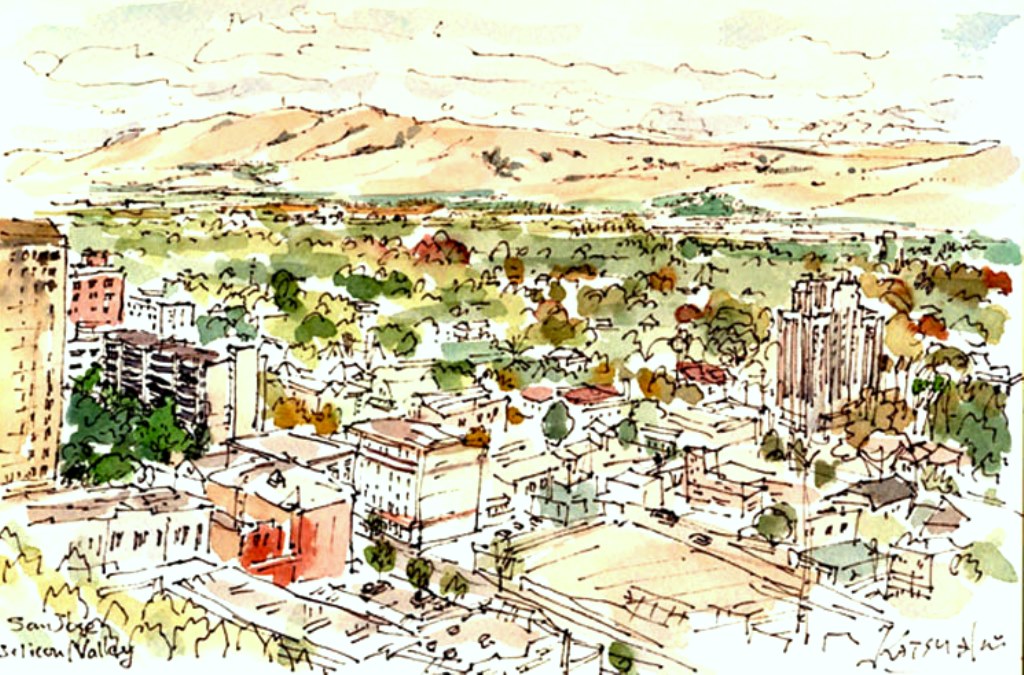| San Jose | Mountain view from 18F of Fairmont Hotel, Fairmont hotel and Palm tree street, The Second street in San Jose |