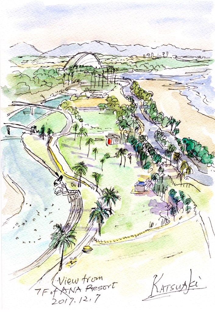 Ocean View from Hilton ヒルトンからのオーシャンビュー(手前はレストラン)