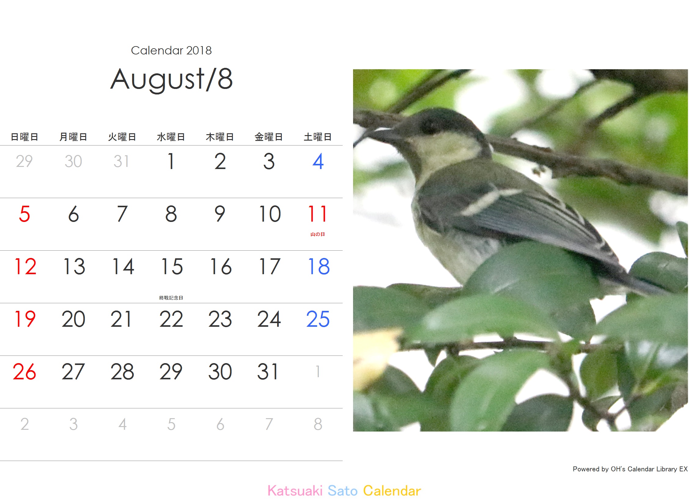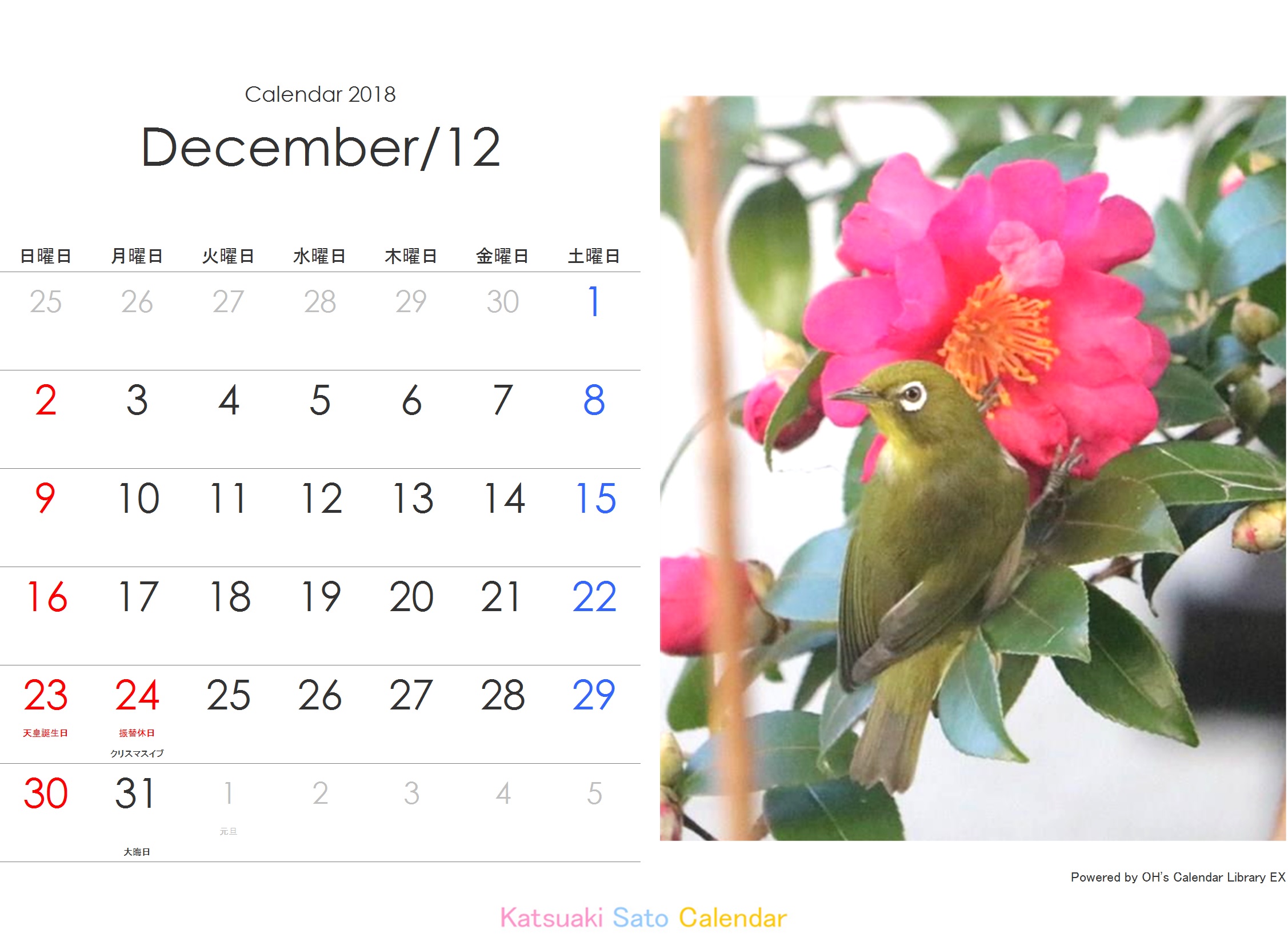 | 2017.12.25 | 鳥カレンダーをアップしました。 |